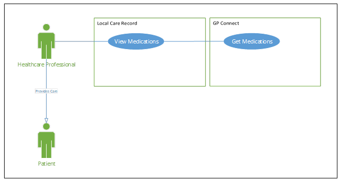 A patient is admitted to hospital and the clinician responsible for the care of that patient in the hospital needs to review their care history and medication records from the GP practice clinical system to assist in determining the appropriate care provision and support. These could be current or past medications, repeat or acute medications, and can be for inpatient, outpatient and community settings. The clinician has access to the LCR, which shares clinical information relevant to the direct care of their patient from a variety of local hospital, community and GP organisations.